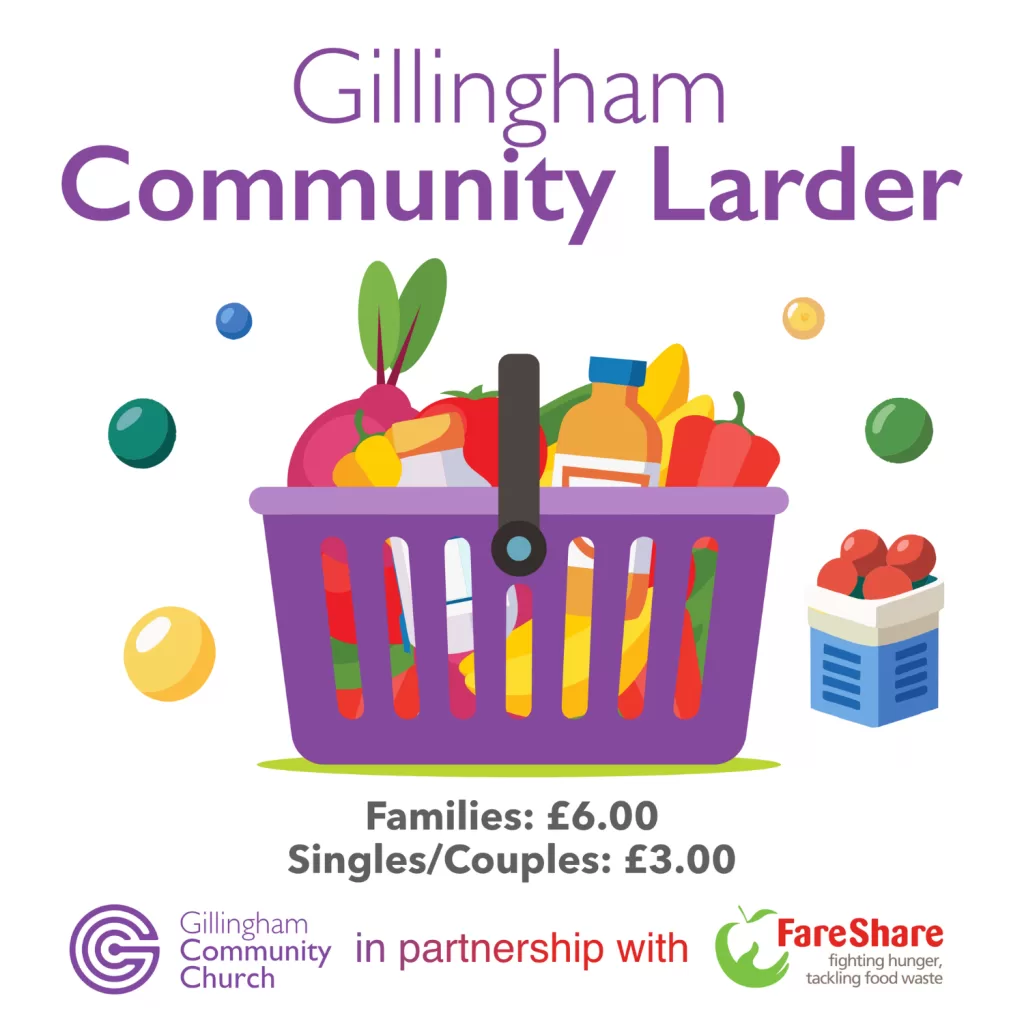 The Food Larder is held at Gillingham Community Church in Gillingham, Dorset on the High Street.